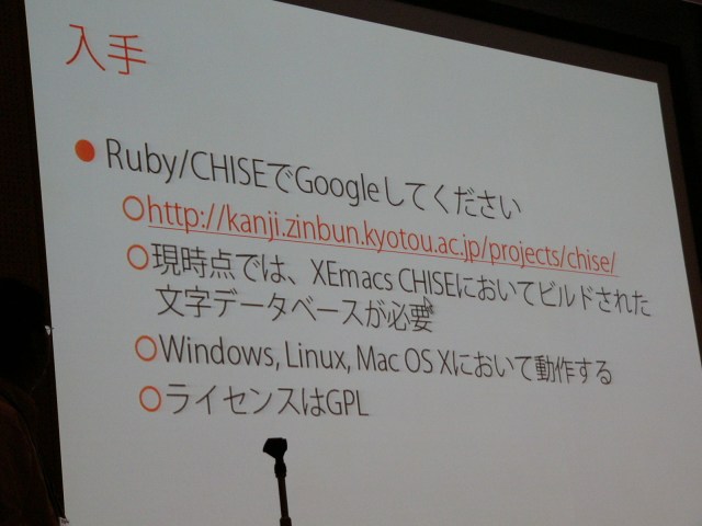 CHISE関係、特にRuby/CHISEのプレゼンテーションが印象的だった。漢字のへんやつくりのつながりのネットワーク図にしてぐりぐり。