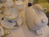 1Fでは紅茶や関係器具の販売をしており、2Fが喫茶になっている。小さなお店で20席ほどだったと思う。店内は白とうすいグリーンで統一されている。店員さんは女性ばかり三人。とても丁寧な対応で好感がもてた。