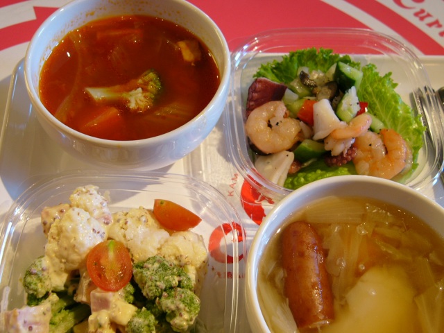 前に赤レンガに行ったときに見て、気になっていた鎌倉ハムキッチン・カーチスに行ってみた。ちょうど冬期限定のセットメニューがあったのでそれを注文した。内容は、サンド、サラダ、スープで、それぞれ五種類、三種類、二種類の中から選ぶことができる。980円。単品だとサンドが580円、スープが300円なので、少しお得。スープのは具だくさんだし、サラダもなかなかよかった(写真は二セット分のサラダとスープ)。