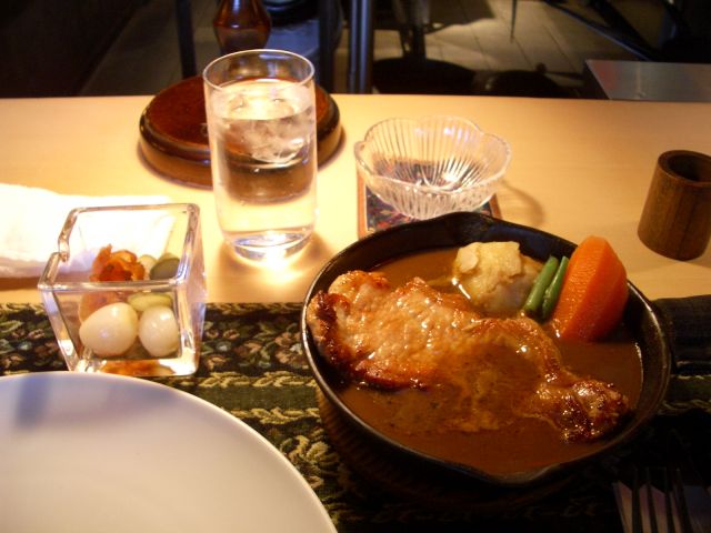 から半年ぶり)。ポークカレーの辛口とチキンカレーの中辛をたのんだ。
