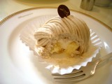この店のウリはモンブランだそうで、そのモンブランの和栗を使ったものと、ショートケーキをたのんだ。でもモンブランはもっと栗の味が強くてもいいんじゃないかな。全体としてはそれなりの味付けにはなっているんだけど、モンブラン分について、ちょっともの足りない感じがする。ショートケーキのほうは、クリームは悪くない。でもスポンジにもう少ししっとり感かふわふわ感があると良いなと思った。中途半端な印象。