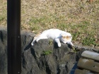 まだ休みのところが多いのか、子供を連れた人々がずいぶんたくさんいて公園内はにぎやかだった。いつもならのら猫たちでにぎやかなのだが。そんなわけで、今日はずいぶんと外れたあたりの斜面でまどろんでいる一匹を見ることができただけだった。
