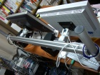次に考えたのはVESAアームで、これなら好きな場所に動かせるし机のスペースもとれるし良さそうだと思ったのだけど、そこそこのものを二つ(液晶モニタが二つあるので)買うとなるとけっこうな金額になる。冷静になって使い方を考えてみると、モニタの向きを動かすといって左右に振るのがせいぜいだろうというのもある。