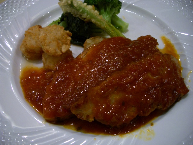 ちなみに、前者のメイン料理と後者のメイン料理は内容が異っていて、前者はその日の料理になるが、後者は肉料理または魚料理を選べる。ただし、前者であれば後者の料理から選んでかえてもらうことができるので都合三種類から選択できることになる。この日の前者のメインは仔羊のグリルか何かだったが、後者の豚ばらのチリソース煮