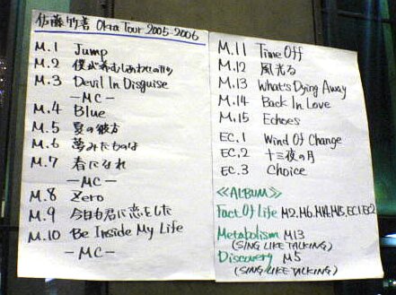 2006-02-08 外出 Okuraツアー 「♪今夜返したい〜」と、歌っている人を見てきた。 主にコーラスでの参加だったけど、存在感があって釘付け。たしか六曲目、彼がびしっと歌った曲が良かったなーと思っていたら、おまけの一曲でやられちゃったな。歌い始める前に客席に向かって「(いっしょに)歌えよ〜」なんて言っていたいたけど、とてもそんなもんじゃない迫力でおしきっていた :-) 開演に間に合うかどうかで走ったりもして疲れたけど行って良かった。 佐藤竹善 音楽